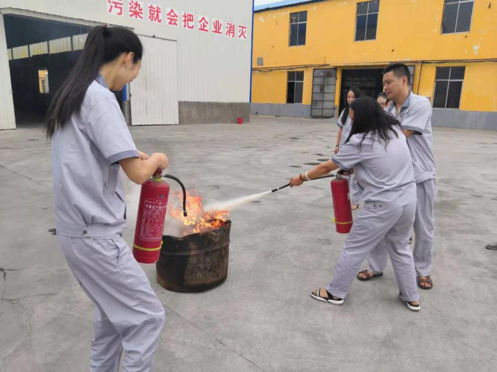 7月9号上午8时00分,天气晴好,风力不大,根据事先安排,由安全员大声喊,成品库房外有起火,快速施救,听到喊声,机关人员立即放下手中工作,跑到失火地方,按平时教育分工,用干粉灭火器灭火,员工按平时学习的使用方法,快速做到灭火,演练比较成功,队员仅用5分钟即赶到现场,10分钟演习结束。